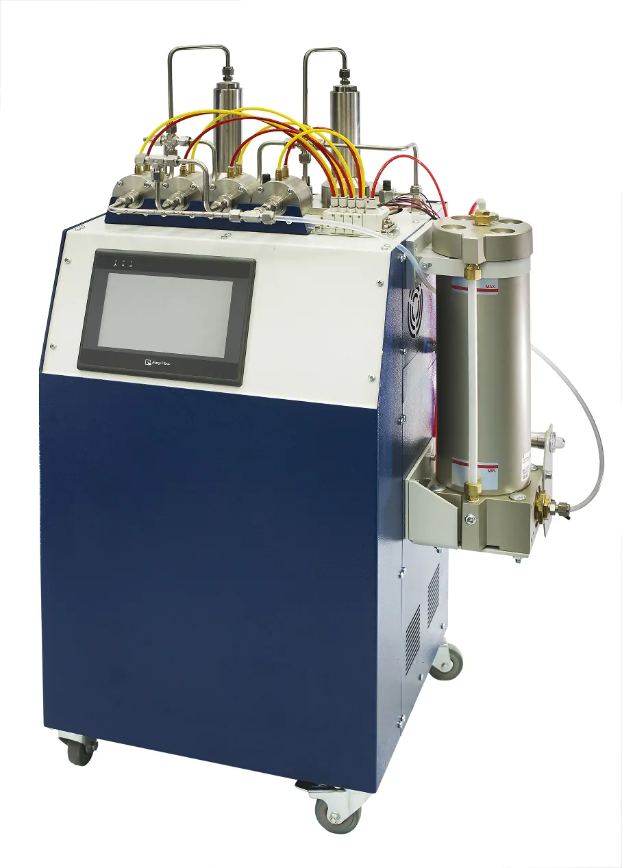 The pump is controlled by a touch screen located on the front panel. The pump controller can be connected to PC by provided software. The pump software allows user to work both in twin and in separate cylinder operating modes: each pump cylinder can operate in its own independent mode.